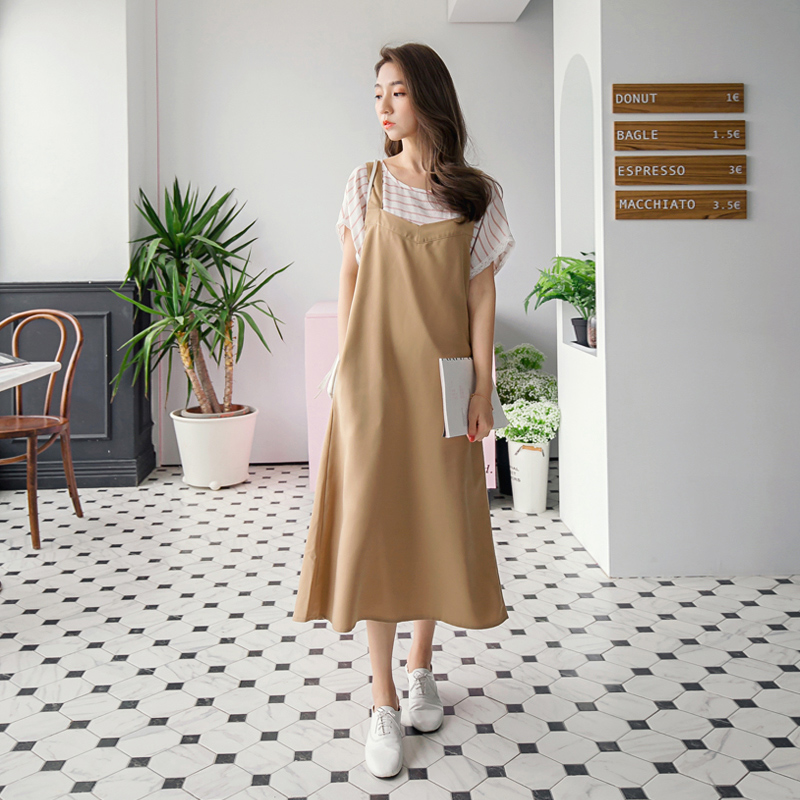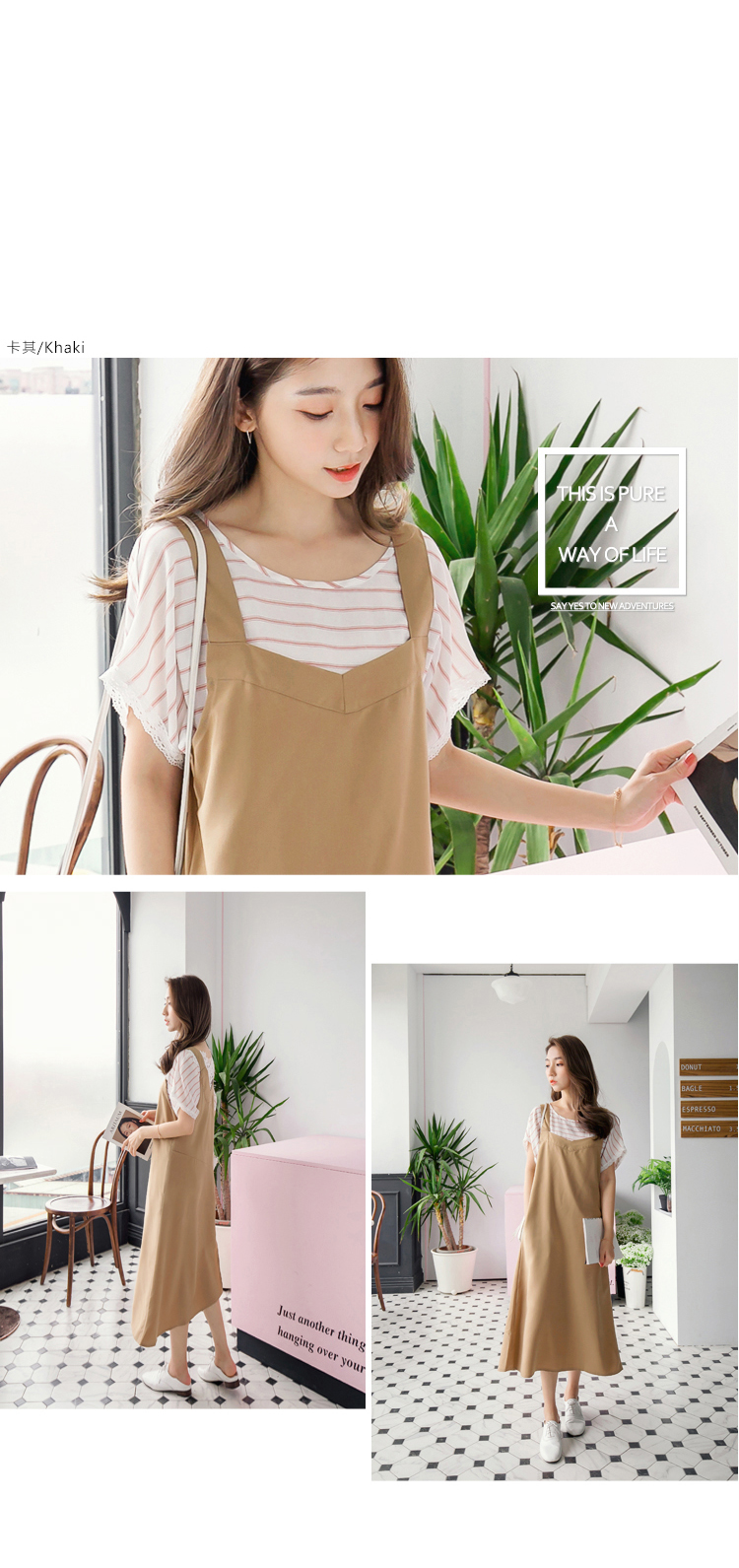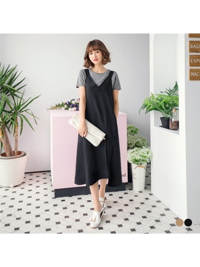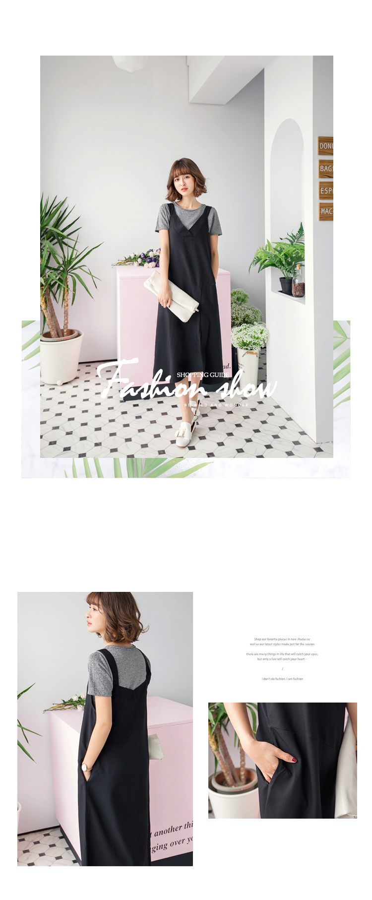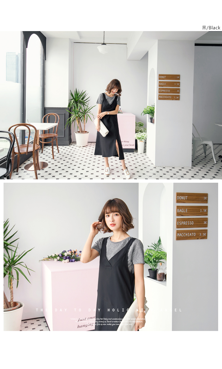 素色V領拼接下襬開衩無袖口袋連身洋裝.2色夏天穿會不會太悶熱如何穿搭比較好看